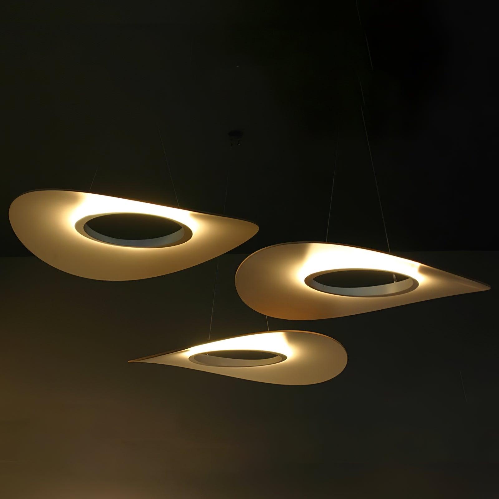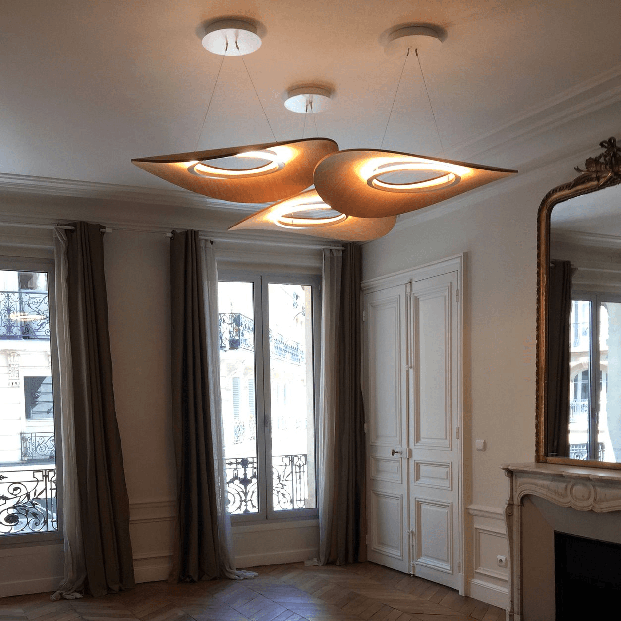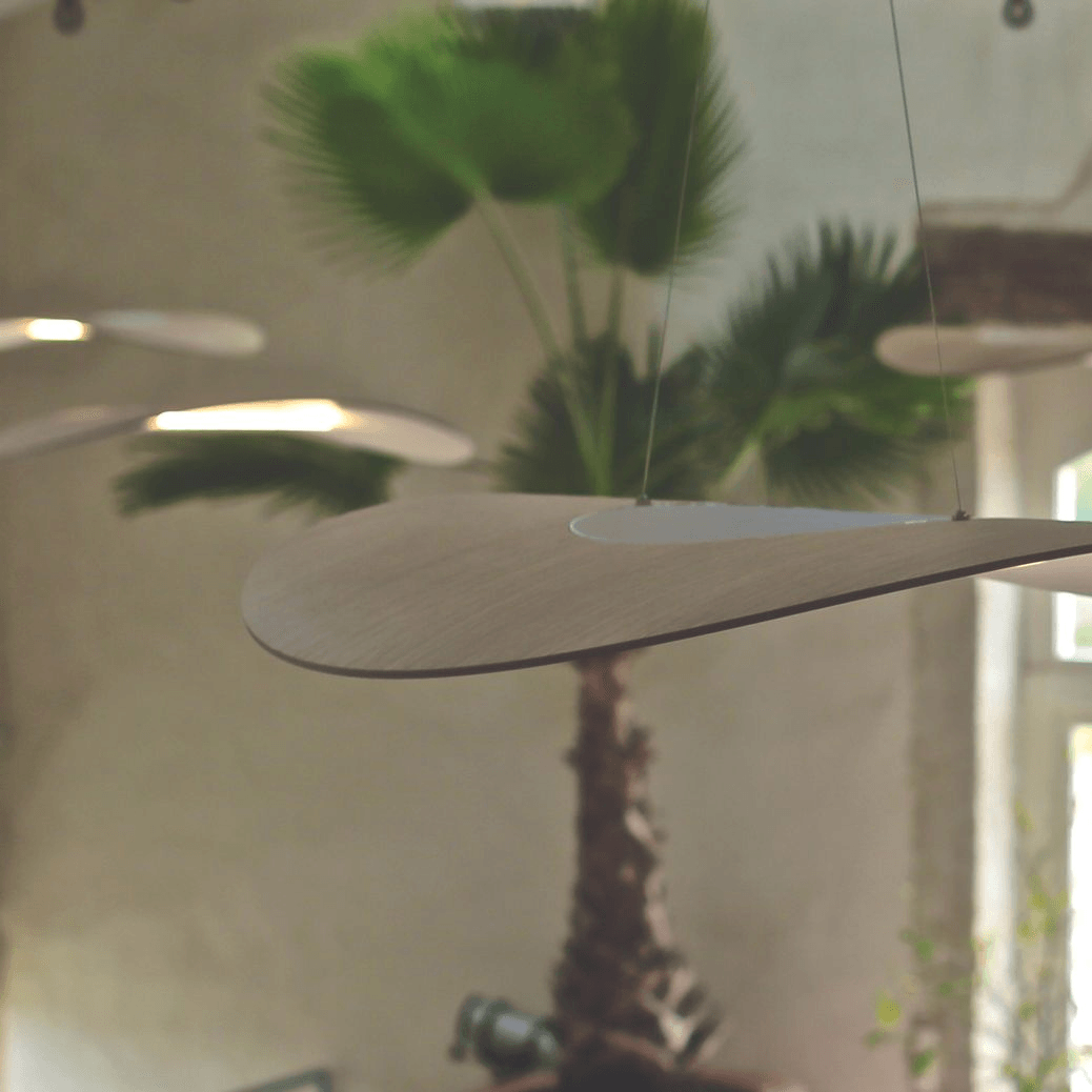 X-flr6 是一款帶間接照明的吊燈。不對稱的 _X-flr6 根據其方向呈現不同的形狀。 _X-flr6 由懸掛它的電纜提供動力,就像一個不明飛行物,漂浮在空中。